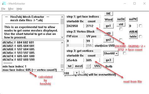 You will also have to use a hex editor to find the models mesh data offsets and counts and then copy them into hex2obj. Explore our gaming tools and scripts section. It is true that there are indices starting at 0x112c50, but they are not the indices for the vertices at the start of the file. 3d model researcher is a program for studying binary files of 3d models, Header i cant figure out the scaling of the uvs, theyre skewed by arbitrary values.